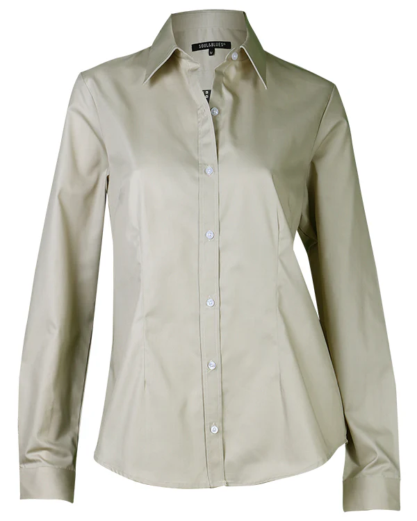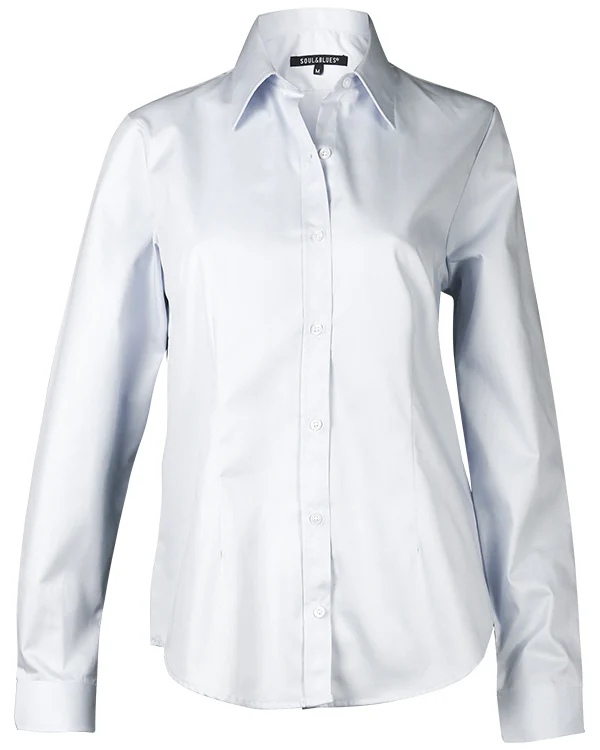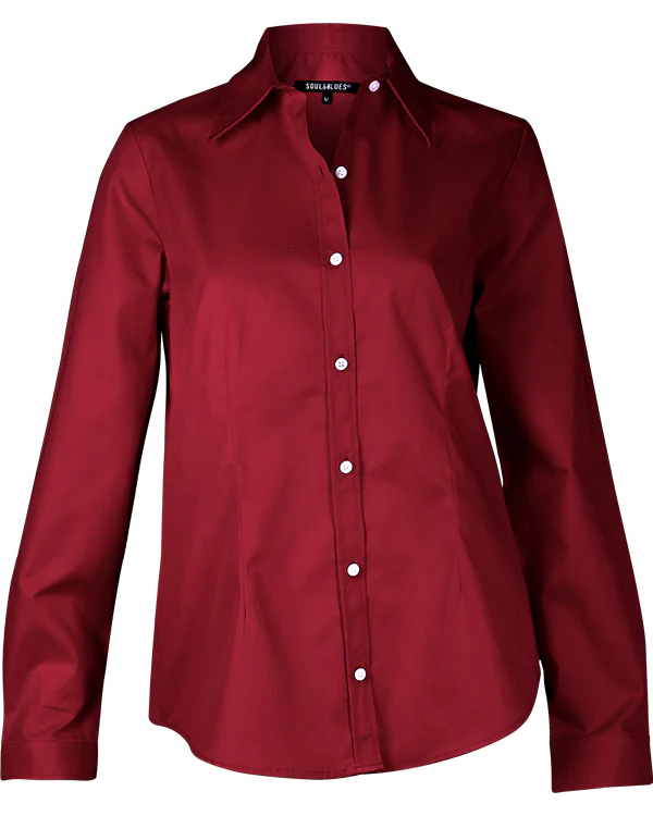 Blusa Soul&Blues estilo Florencia, diseñada para ofrecer un look clásico y sofisticado con total comodidad. Confeccionada en gabardina lisa de alta calidad, su composición de 65% poliéster y 35% algodón brinda una textura resistente, suave al tacto y fácil de mantener.