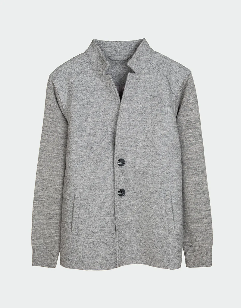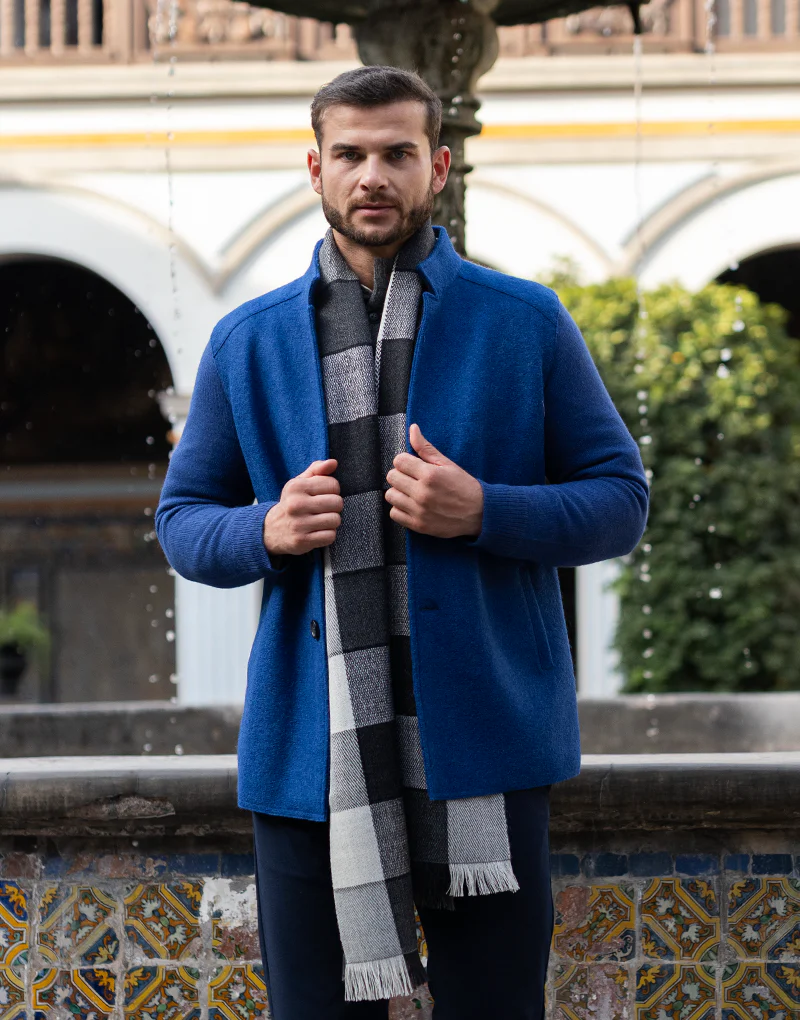 Nuevo abrigo estilo blazer elaborado con fibras naturales como son la fibra de baby alpaca y lana, dise帽ado con un corte moderno otorga el entalle adecuado, las mangas al ser tejidas da comodidad para el hombre actual, comodidad y estilo resumidos en una sola prenda.
