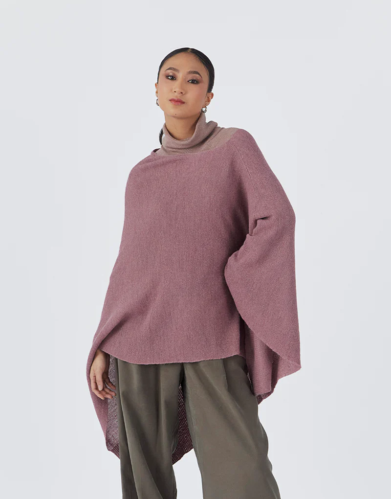 Capa estilo poncho de corte asimétrico, tejido en lujosa y fina fibra de royal alpaca aporta la suavidad, comodidad y una exquisita caída al vestir, prenda ideal para ser vestida en cualquier momento y ocasión.