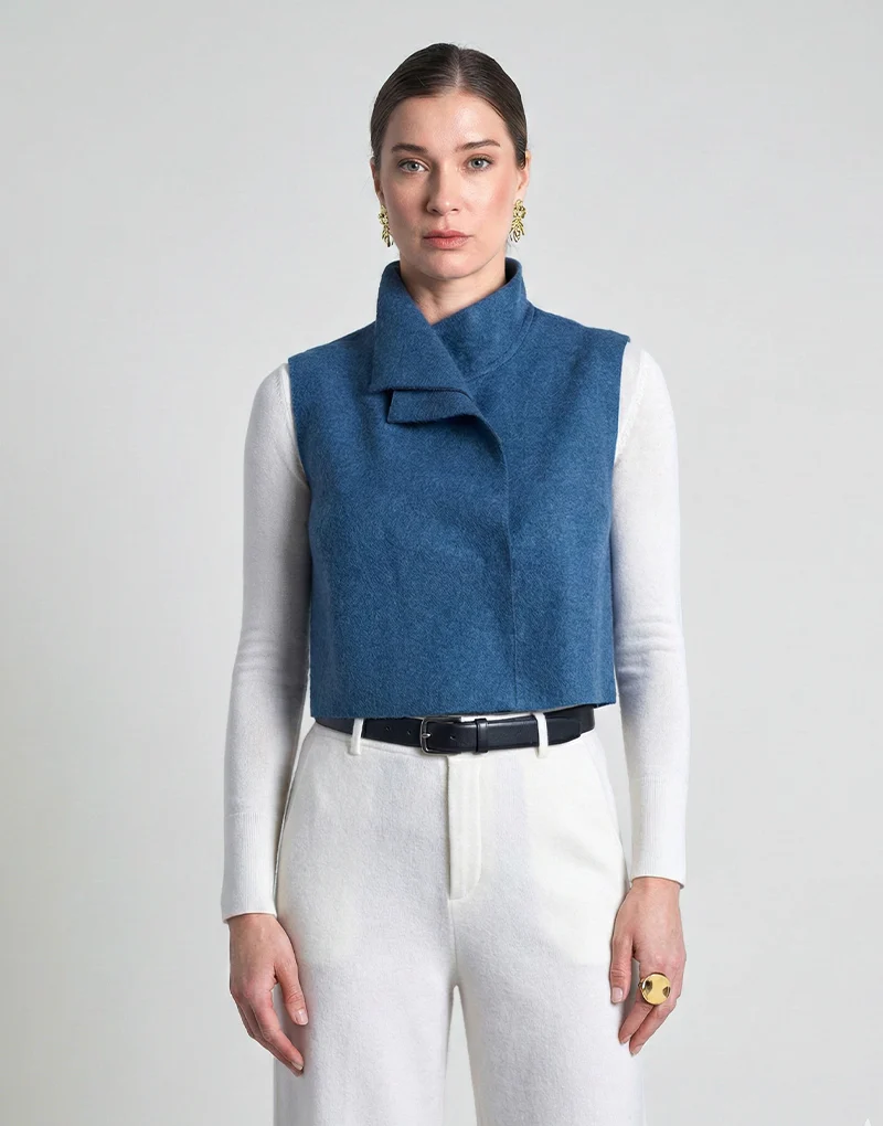 El Cristal Vest redefine la elegancia moderna con un diseño limpio y una silueta pulida. Su cuello amplio estructurado y el corte recto ligeramente acortado brindan un equilibrio perfecto entre sobriedad y audacia. Confeccionado en una cálida mezcla de 60% baby alpaca y 40% lana, este chaleco ofrece suavidad excepcional, abrigo ligero y caÃda impecable. Perfecto para complementar camisas o vestidos, su diseño versátil lo convierte en una pieza atemporal que se adapta con facilidad a múltiples estaciones y estilos.