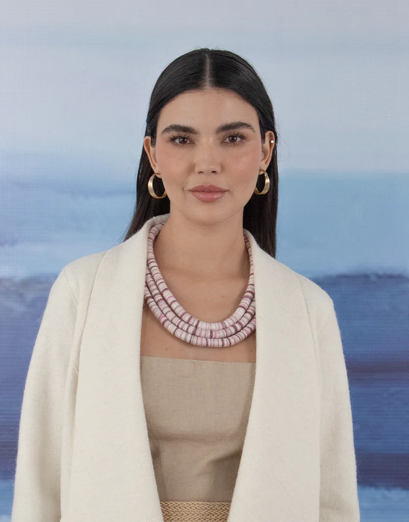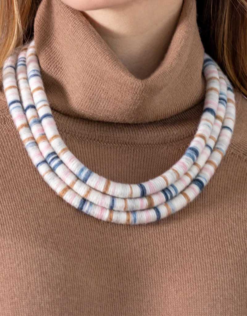 Nuestros collares son hecho a mano íntegramente por nuestras artesanas las que son capacitadas en técnicas textiles fomentando su talento y futuro, de esta forma se contribuye a una moda sostenible y moda ética.