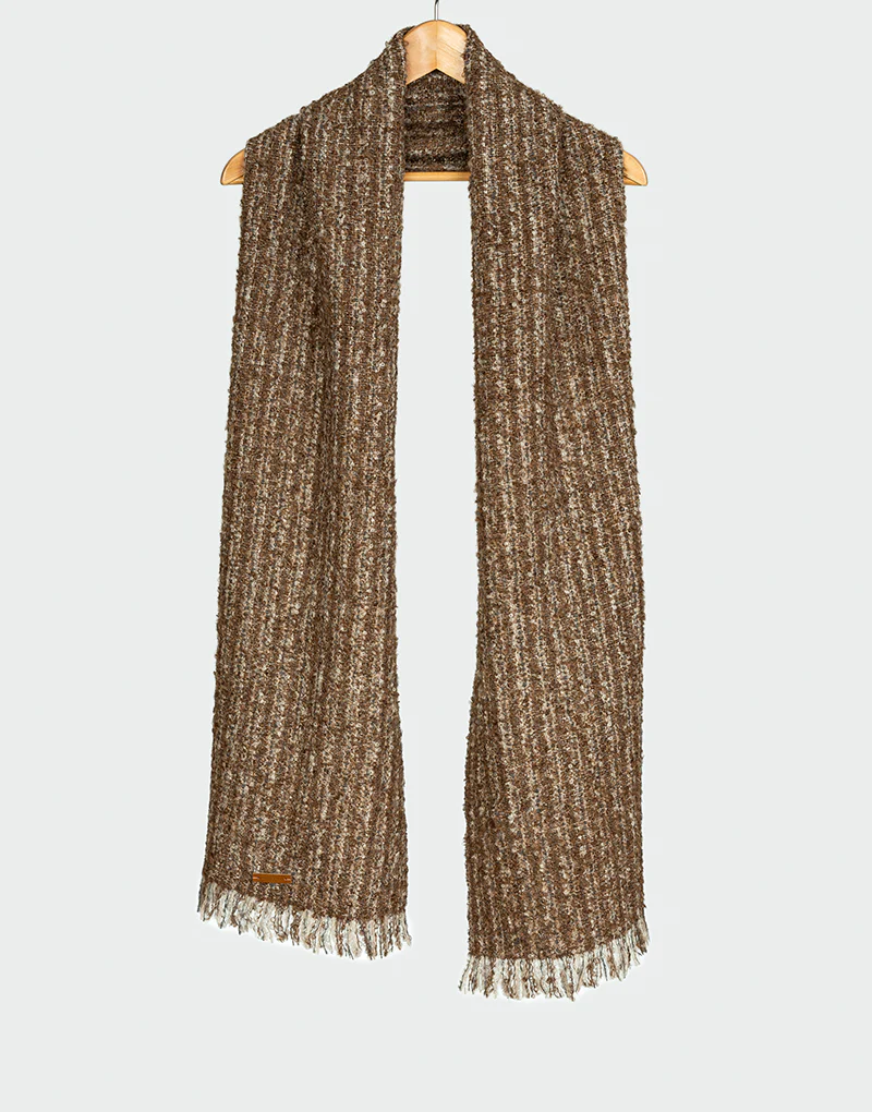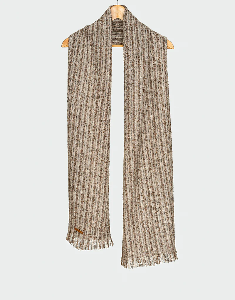 El Maras Scarf es una bufanda de diseño sofisticado que combina la calidez natural de la alpaca con un toque de polyamide para mayor resistencia y durabilidad. Conformada por 89 % Alpaca y 11 % Polyamide, esta pieza ofrece una textura densa y acogedora, ideal para los días de clima frío.