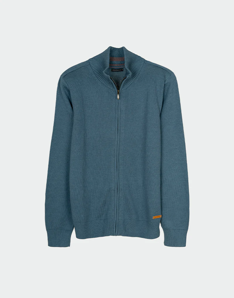 C谩rdigan con cremallera tejido con con fibras sostenibles como son la fibra de algod贸n org谩nico y tencel, esta composici贸n garantiza una prenda de gran suavidad, frescura y comodidad, ideal para el hombre que busca mantenerse c贸modo y moderno.