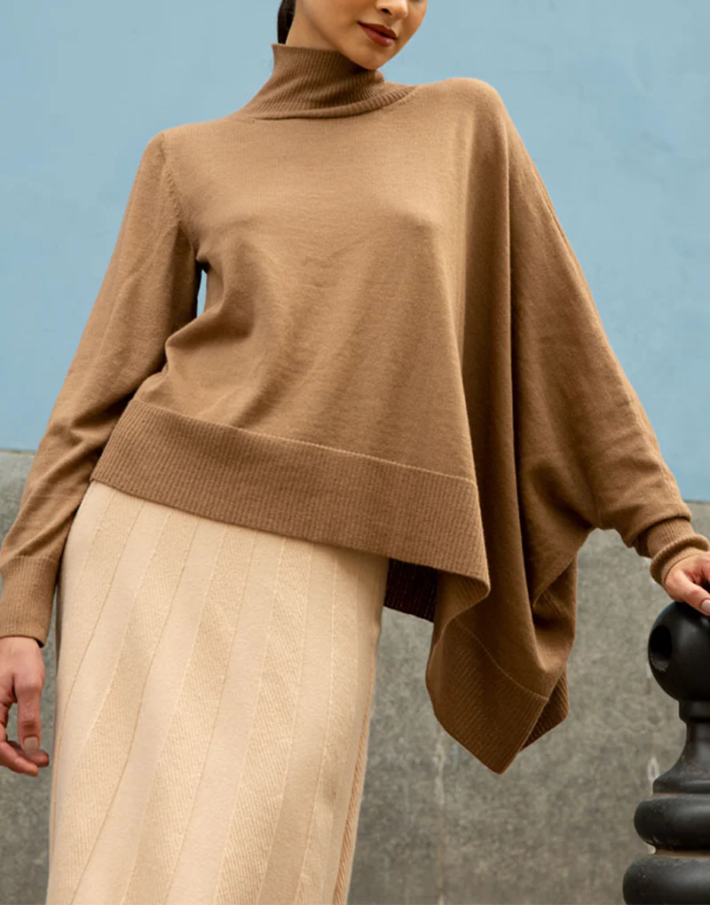 Suéter en tejido de punto en la más lujosa fibra de royal alpaca que brinda una delicada suavidad y caÃda al vestir, el estilo capa aporta el toque moderno y único para una prenda con gran estilo y versatilidad.