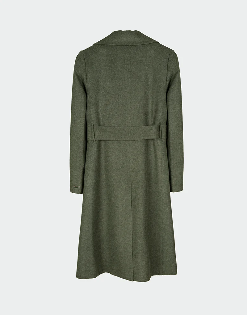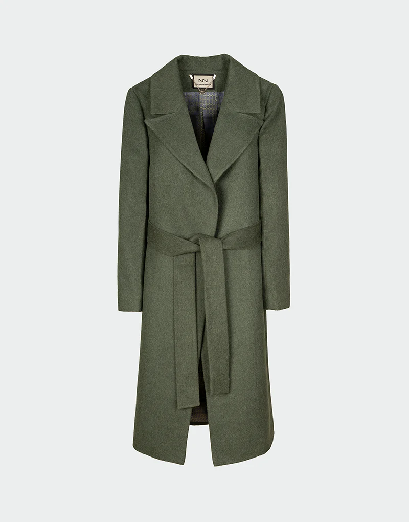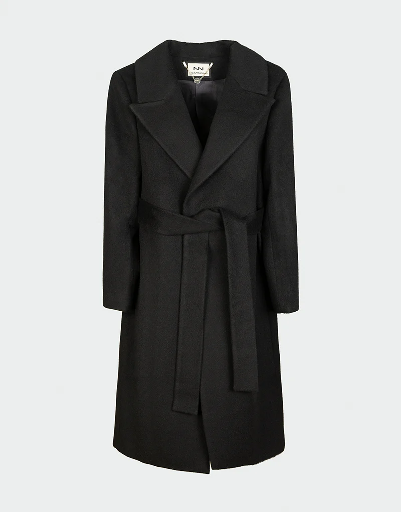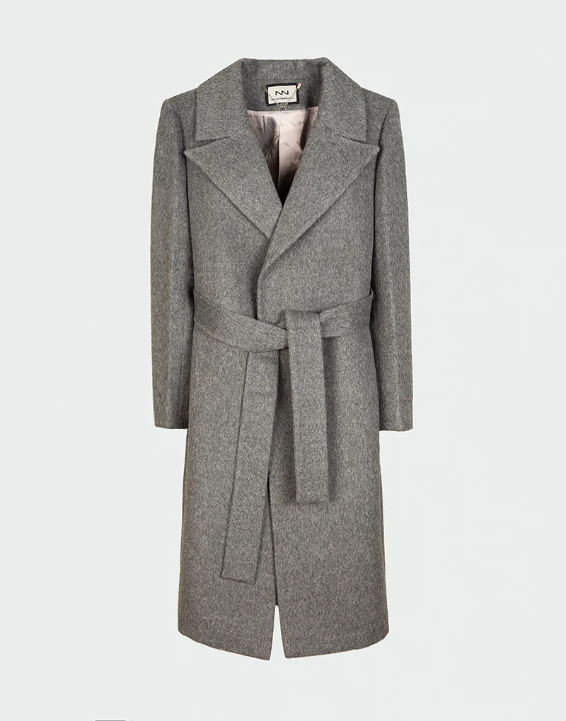 El Sky Coat combina un corte clásico con cinturón y una mezcla de baby alpaca sedosa y lana merino estructural. Ideal para looks casuales o elegantes con un aire de sofisticación artesanal.