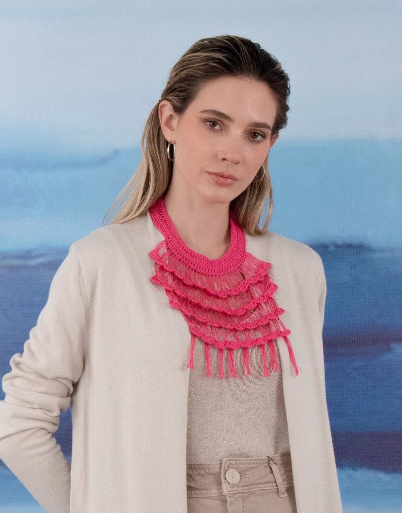 Nuestros collares son hecho a mano íntegramente por nuestras artesanas las que son capacitadas en técnicas textiles fomentando su talento y futuro, de esta forma se contribuye a una moda sostenible y moda ética.
